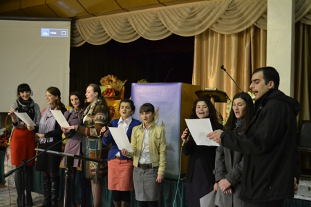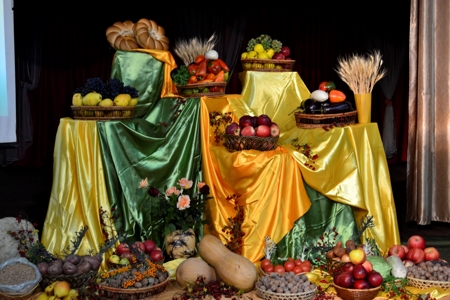 В благодарение за Его заботу, любовь и милость к нам, были принесены богатые плоды земли, которыми Бог наделил нас. Была украшена сценами различными фруктами, овощами, ягодами и бобовыми. После программы, все члены церкви со всеми гостями были приглашены за братский стол. Все продукты, которые были принесены в Дом Божий в тот же вечер были собраны и отвезены в детский дом в Вадулуй Воды под названием "Сurcubel" . Благодарим всех кто разделил с нами этот прекрасный праздник благодарения.